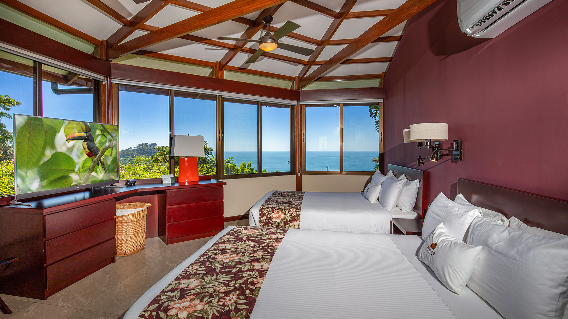 Perched amid lush tropical surroundings, Vista Pacífica retains Tulemar’s signature octagonal design and offers sweeping views of the Manuel Antonio coastline.