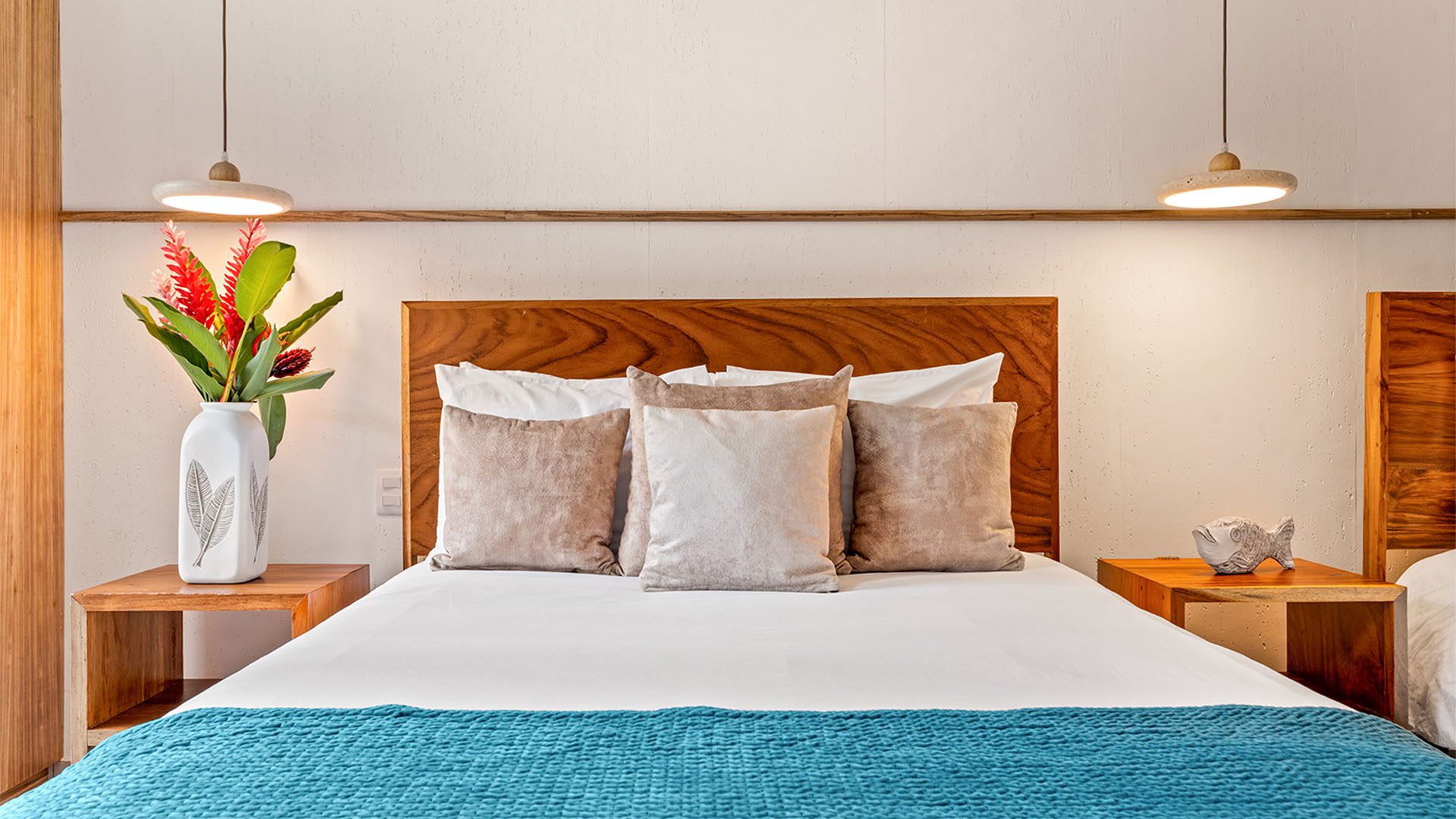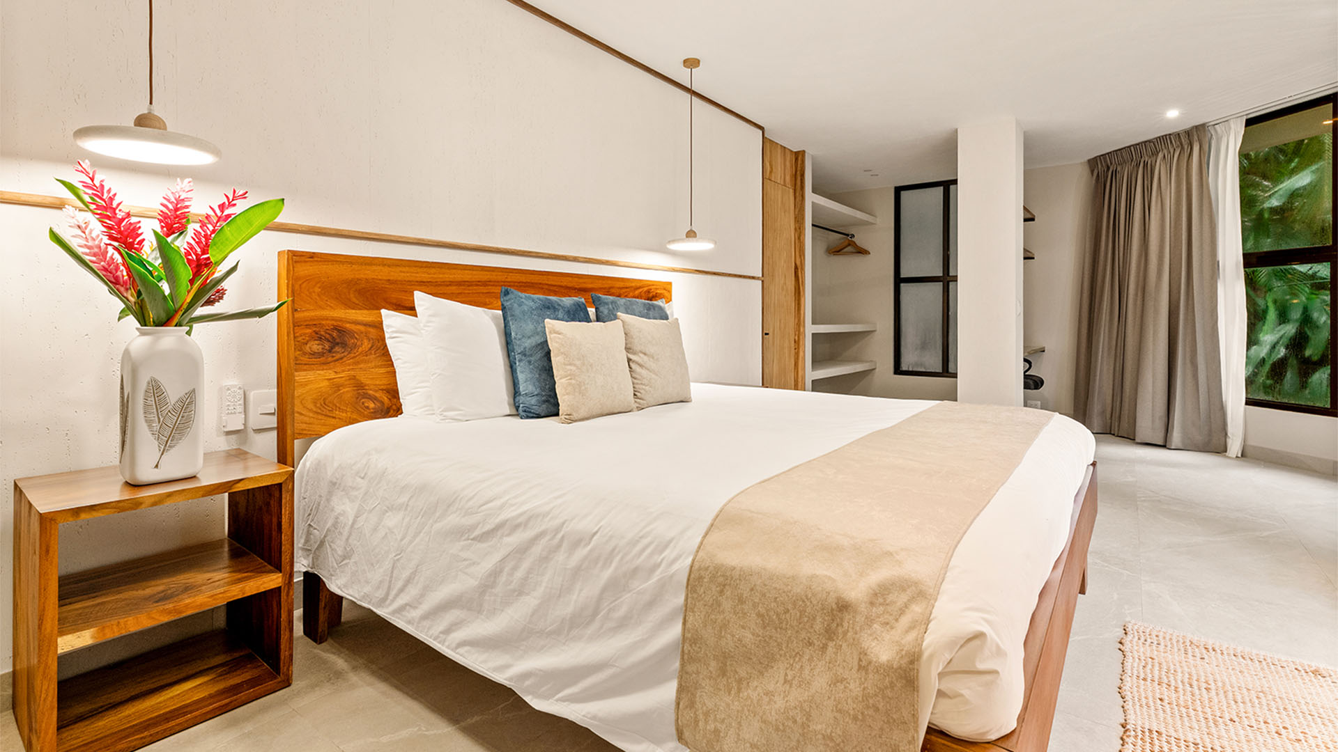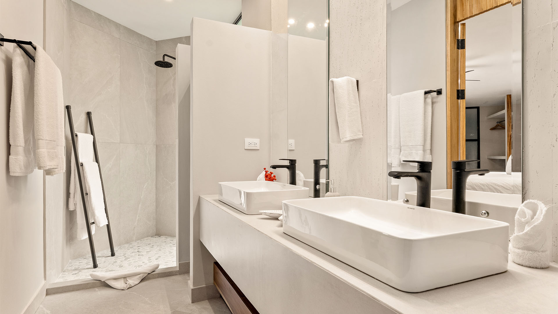 Casa Quivira is the perfect accommodation for groups of up to 10 guests, with a primary suite featuring a king bed, a second bedroom with two queen beds, and a third bedroom also fitted with two queen beds. Safes are provided in each bedroom closet. Each bedroom offers a private ensuite bathroom with a walk-in shower, ensuring comfort, privacy, and convenience for all guests. For further accommodation, there is also a day bed in the main living area.