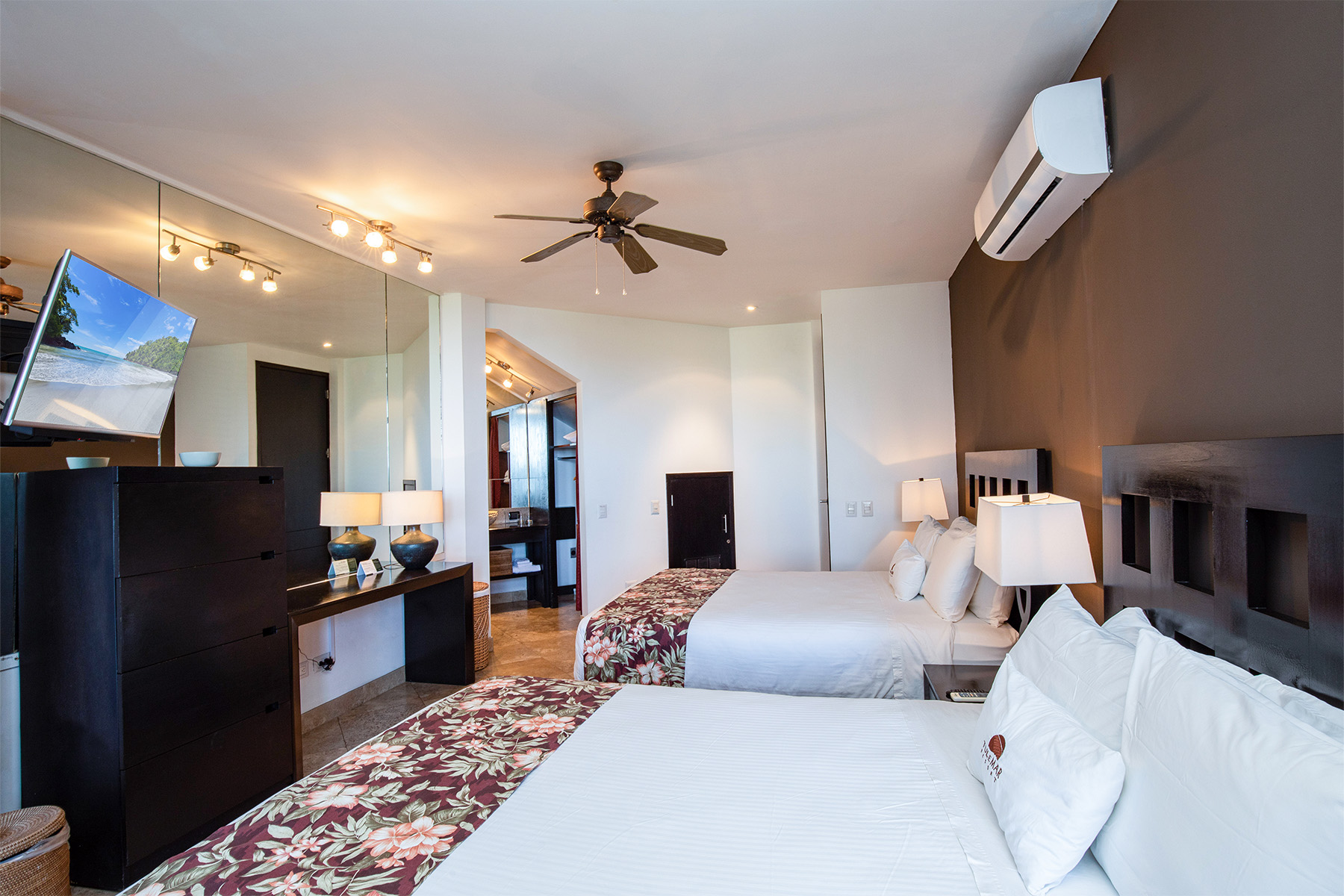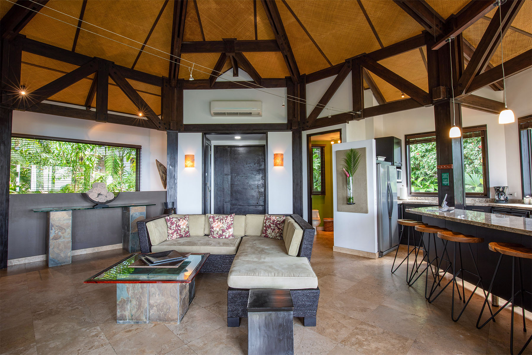 Tulemar Resort’s Two Bedroom Casas are made for relaxation. Spread over two levels, there’s enough room for up to 8 people. Little touches of luxury grace every square foot of these villas, from the Travertine floors and top of the line mattresses, to the stone covered outdoor hot tub on your private 1/2 wrap-around verandah.