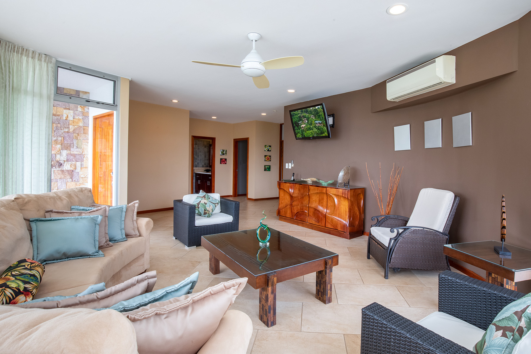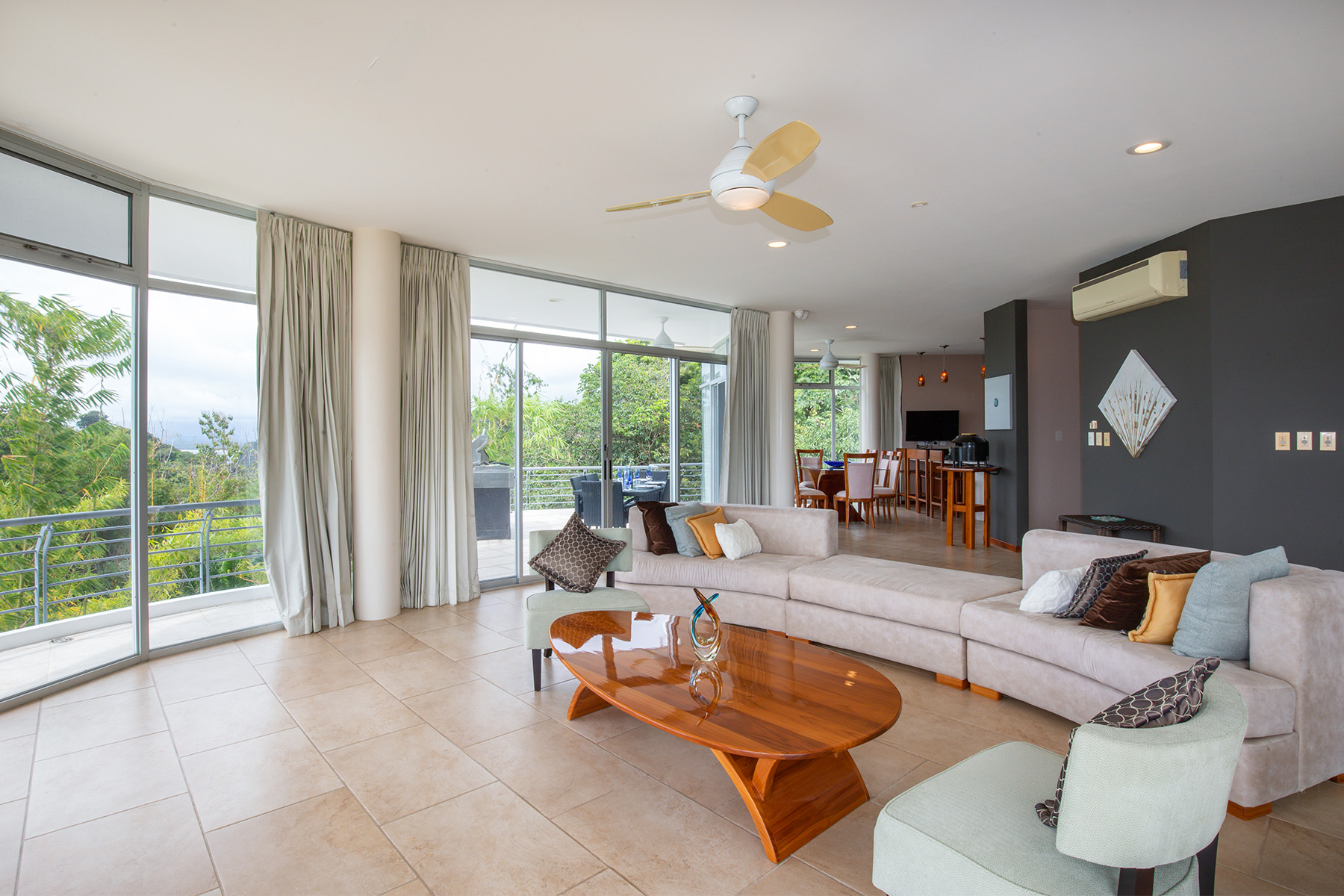 With extensive outdoor living space, numerous living areas, and a deluxe kitchen, Casa Palmas Del Mar is perfect for entertaining or family dinners after a day of adventure. The master suite also features some of the most incredible views to be found within Tulemar, with floor to ceiling windows, an expansive private patio, wet bar, luxurious bathroom with outdoor shower and more.